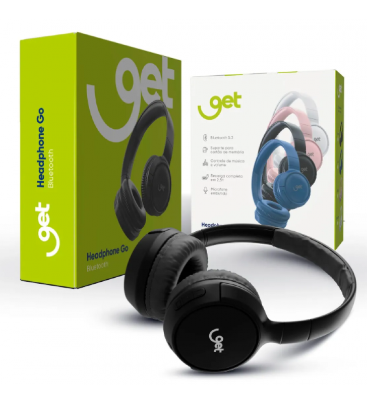 Headphone Bluetooth Get Go Preto conta com microfone integrado e fornece autonomia para 12h de reprodução de músicas sem interrupções!