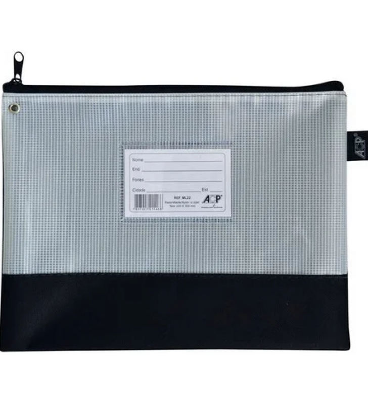 Pasta malote ml22 em nylon com zíper 22x30 preto Acp
