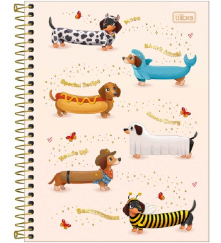 O Caderno Espiral Capa Dura Colegial 10 Matérias Brownie 120 Folhas da Tilibra é perfeito para você que busca uma opção para organização da rotina de estudos com ilustrações dos cachorrinhos mais fofos.