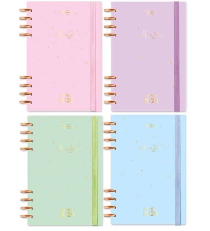Bolsa portfólio, cartela de adesivos, metas anuais, planejamento anual, planejamento mensal, diário com 1 dia por página e wire-o dourado.
