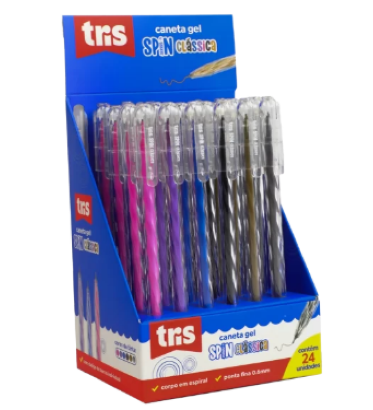 Corpo transparente com design em espiral, a Caneta Gel Spin traz opções de tinta em cores clássicas e dourada e prateada. Ponta de 0.6mm para traços precisos e delicados.