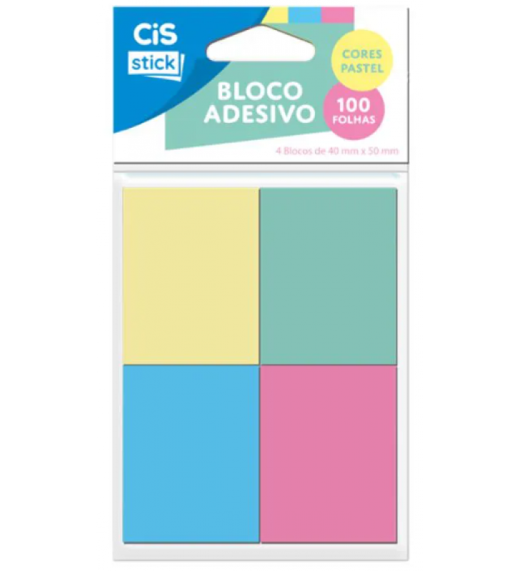 Bloco adesivo cores pastel 04 blocos com100 folhas 30x50mm Cis