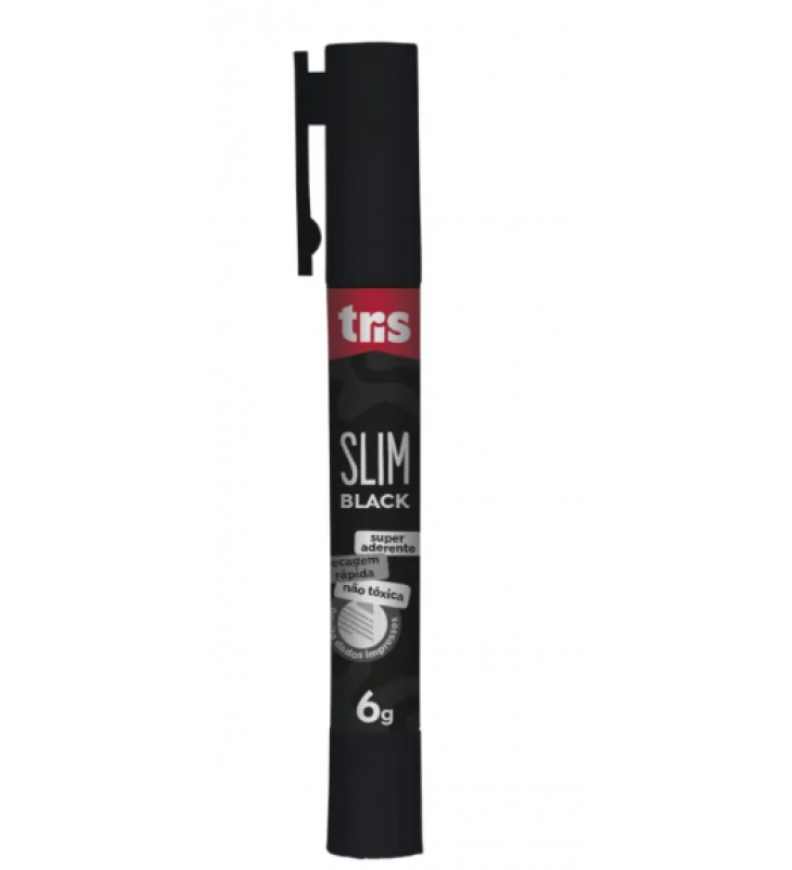 A Cola Bastão Slim Black TRIS 911148 é prática, compacta e ideal para o uso no dia a dia escolar ou no escritório. Com design moderno e embalagem na cor preta, oferece aplicação precisa e sem desperdícios.