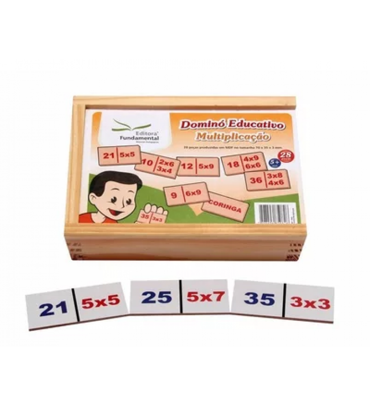 Dominó multiplicação 28 peças mdf Fundamental Brinquedo