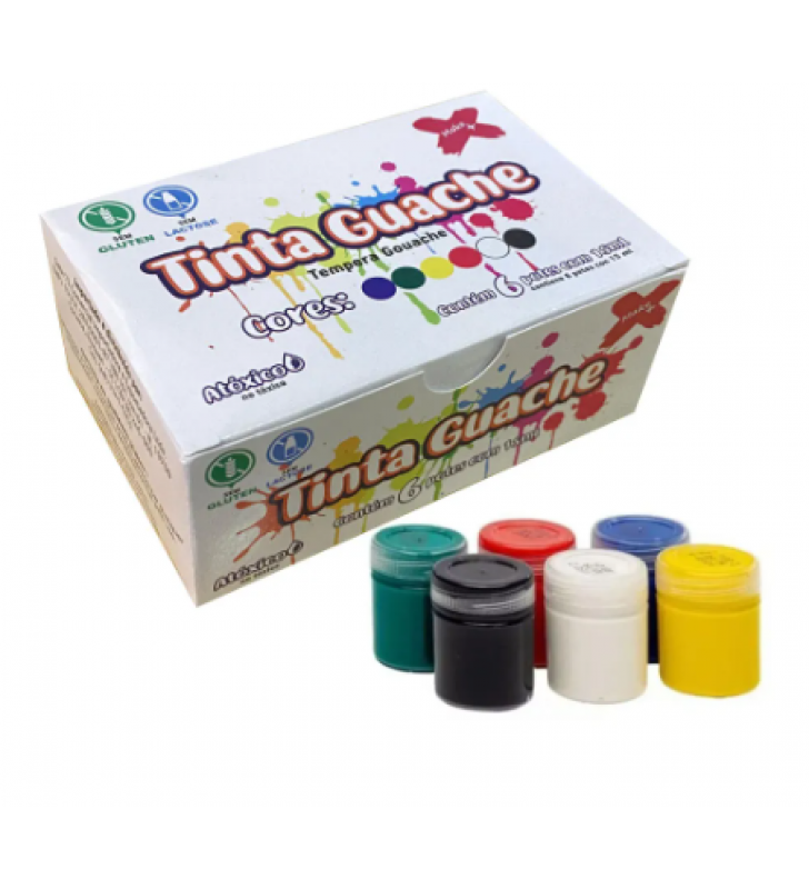 Tinta guache tempera com 6 cores atóxica 15ml Make+