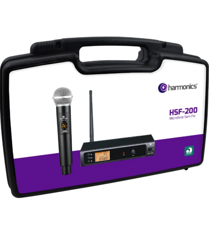 O microfone Sem Fio UHF multi-frequência com Display Digital e função Auto Scan Harmonics HSF200 Simples é um sistema que acompanha um microfone sem fio com capsula padrão polar cardioide e um receptor, projetado para uso profissional em performances ao vivo, apresentações, conferências e outros eventos onde é necessário um sistema de áudio portátil e de alta qualidade.