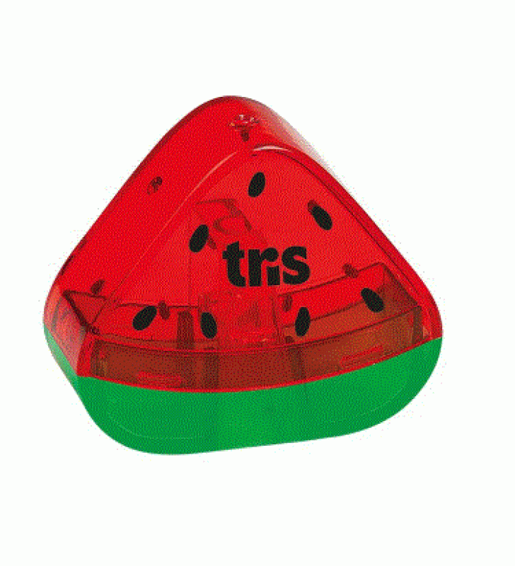 O Apontador com Depósito TRIS é ideal para quem busca praticidade e um toque de diversão no material escolar. Com design temático de melancia, ele traz cores vibrantes e formato atrativo, encantando crianças e adolescentes. Possui lâmina de alta qualidade e depósito para armazenar as aparas, mantendo o ambiente limpo e organizado.