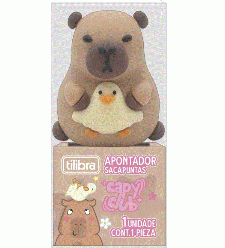 O Apontador de 1 Furo sem Depósito CapyClub da Tilibra é eficiente para apontar lápis e espalhar doses diárias de fofura com o visual divertido de capivara. Este modelo, com um furo e sem depósito, é equipado com uma lâmina de aço carbono, oferecendo um apontar suave e preciso para prolongar a vida útil dos seus lápis.