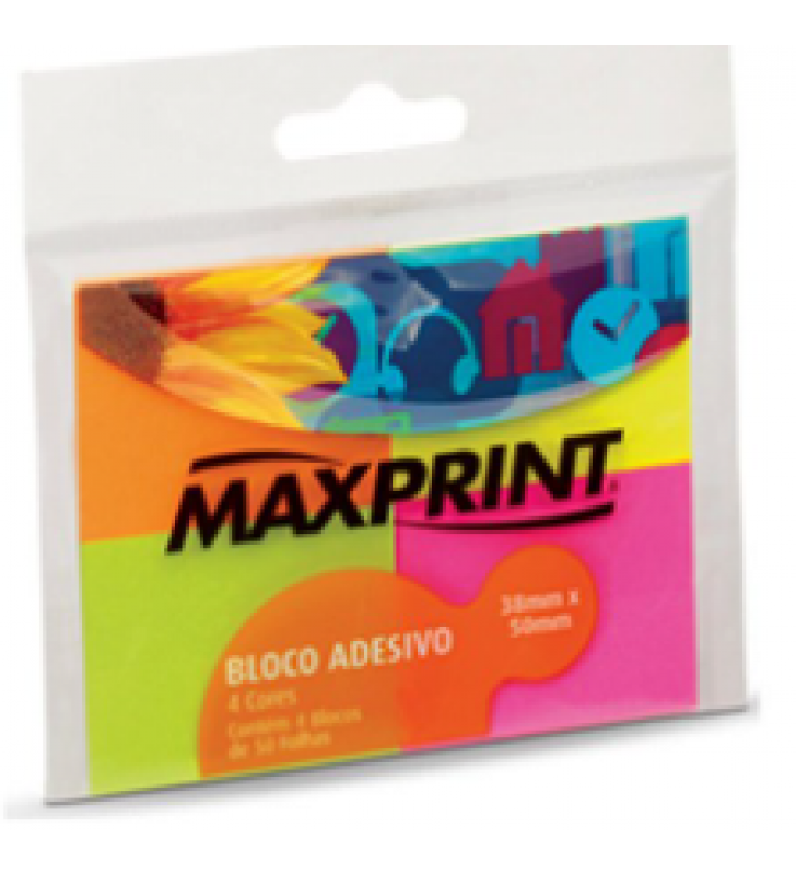 Bloco adesivo neon color 4 blocos com 50 folhas 35x50mm Maxprint