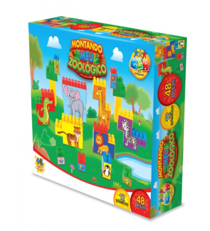Blocos para montar meu zoológico 48 peças 12 adesivos Ggb Plast