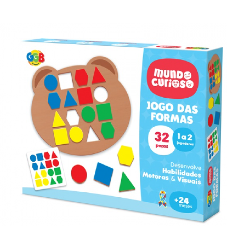 Jogo das Formas – Aprender Brincando! Com 32 peças coloridas, esse jogo estimula o reconhecimento de formas, cores e o desenvolvimento das habilidades motoras e visuais.