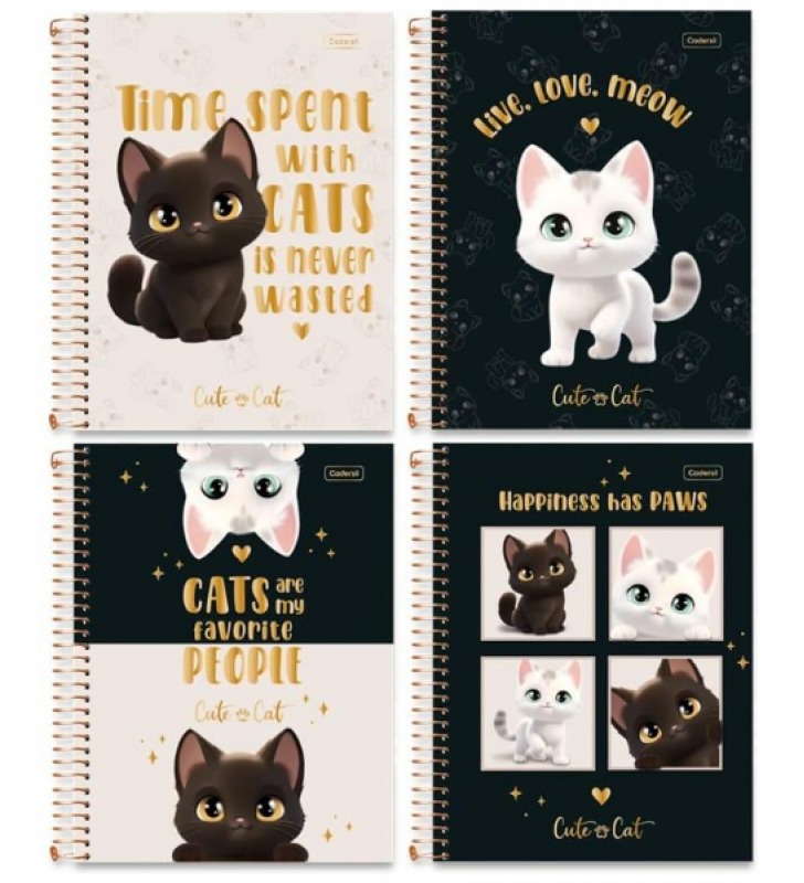 Caderno espiral capa dura 1 matéria 80 folhas cute cat universitário Cadersil