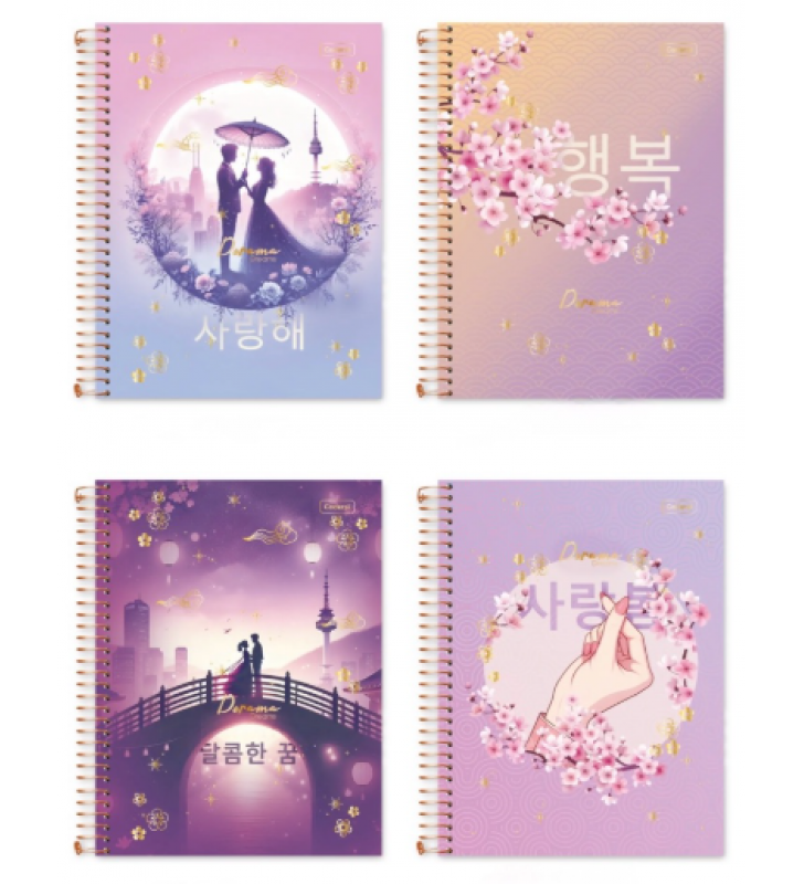 Caderno espiral capa dura 1 matéria 80 folhas dorama universitário Cadersil