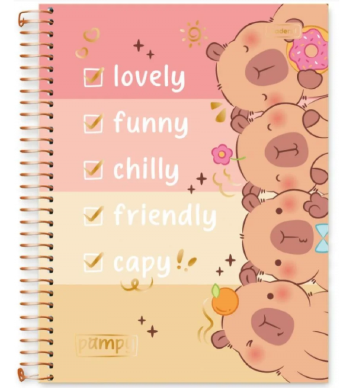 O Caderno Universitário Capy Pampy 10 Matérias 160 Folhas da Tilibra é a escolha perfeita para quem ama produtos de papelaria cheios de personalidade, charme e alegria. Inspirado na doçura das capivaras, o design da linha Pampy traz capas encantadoras com laminação fosca e detalhes em hot stamping dourado, adicionando um toque de brilho delicado que transforma qualquer mesa de estudos em um ambiente acolhedor.