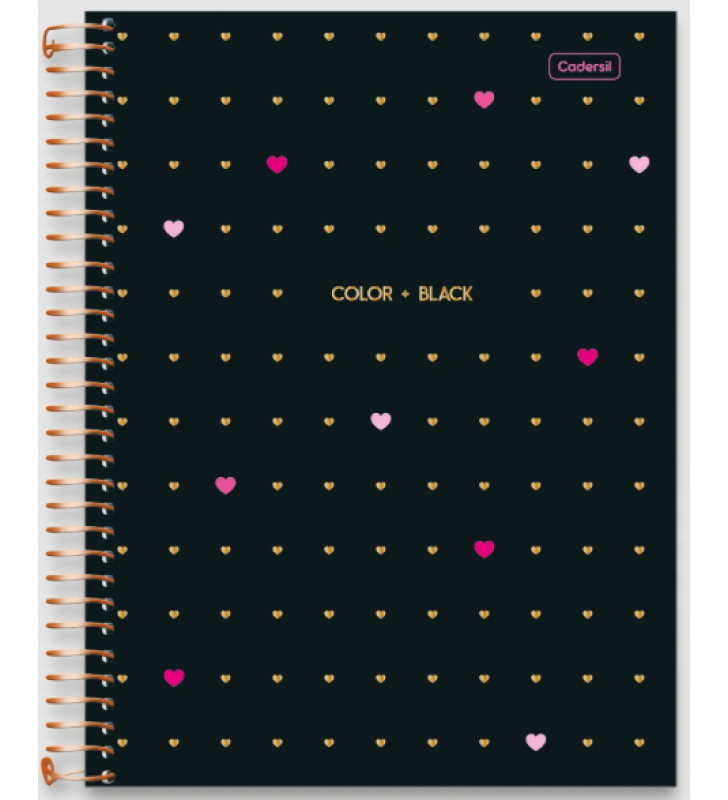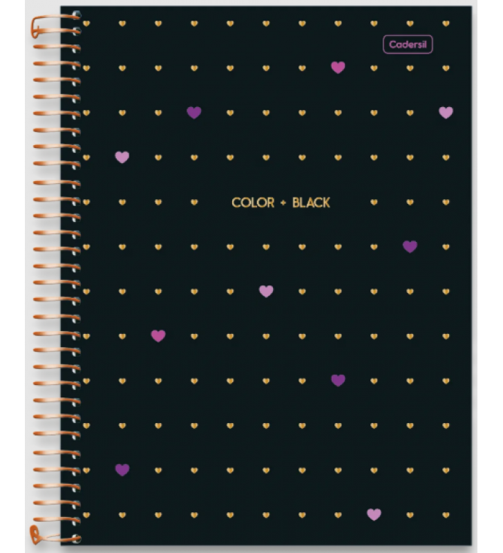 Caderno espiral capa dura 15 matérias 240 folhas color black feminino Cadersil