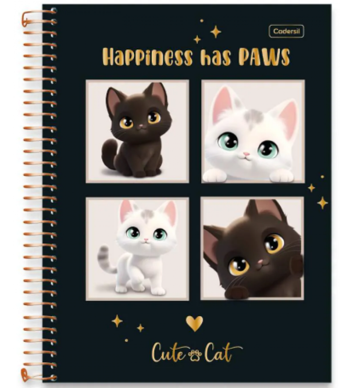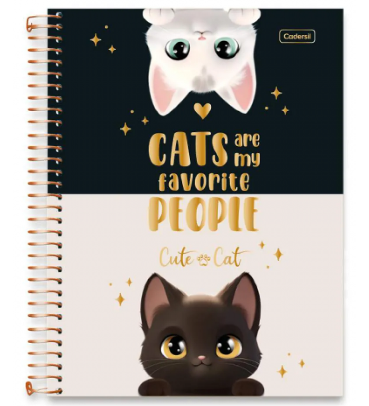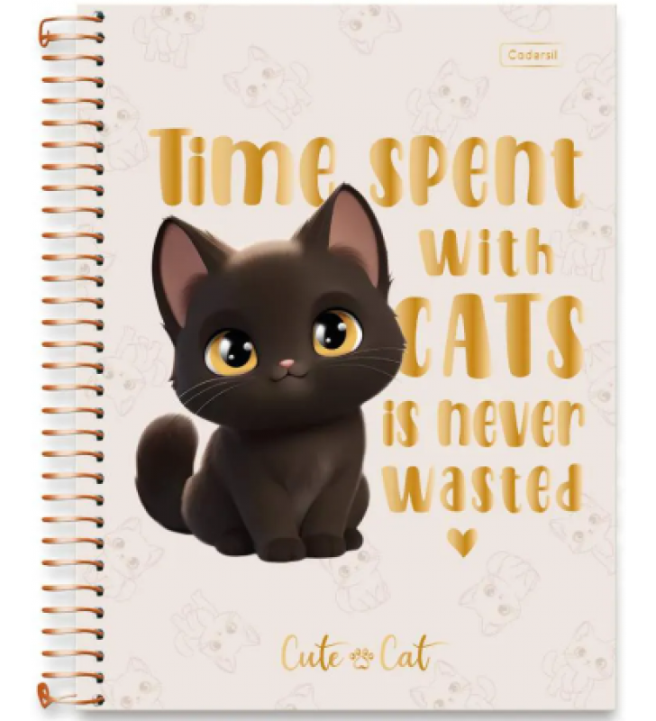 Caderno espiral capa dura 15 matérias 240 folhas cute cat universitário Cadersil