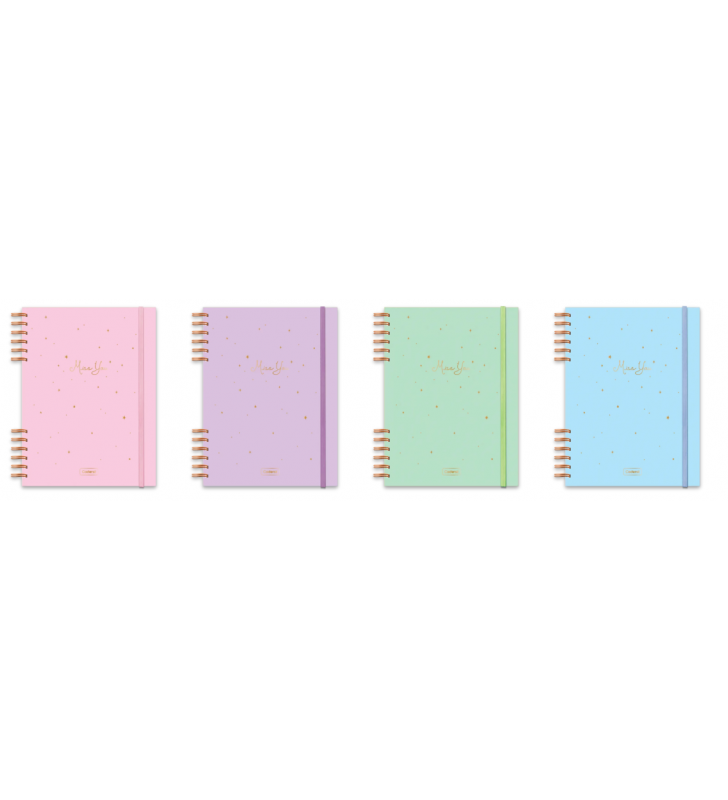 Caderno espiral capa dura 80 folhas com elástico miss you coleg Cadersil