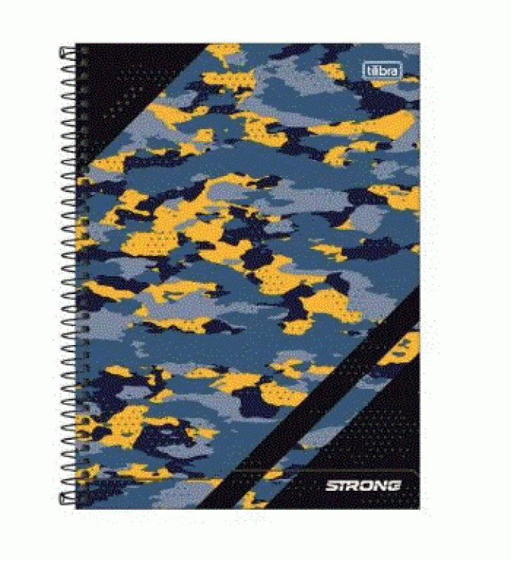 O Caderno Espiral Capa Dura Universitário 20 Matérias Strong 320 Folhas da Tilibra é perfeito para você que busca uma opção para organização da rotina de estudos com visual que explora diferentes estilos de cores da estampa camuflada.