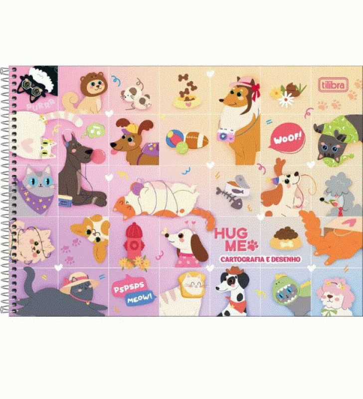 Caderno espiral capa dura de desenho 80 folhas hug me Tilibra