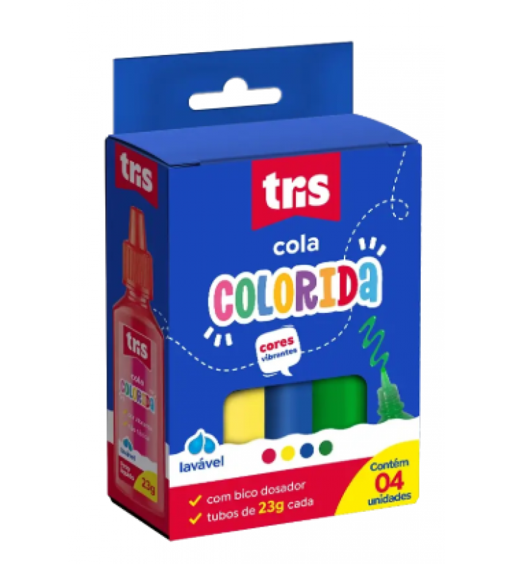 Cola colorida 23gr com 4 cores lavável Tris