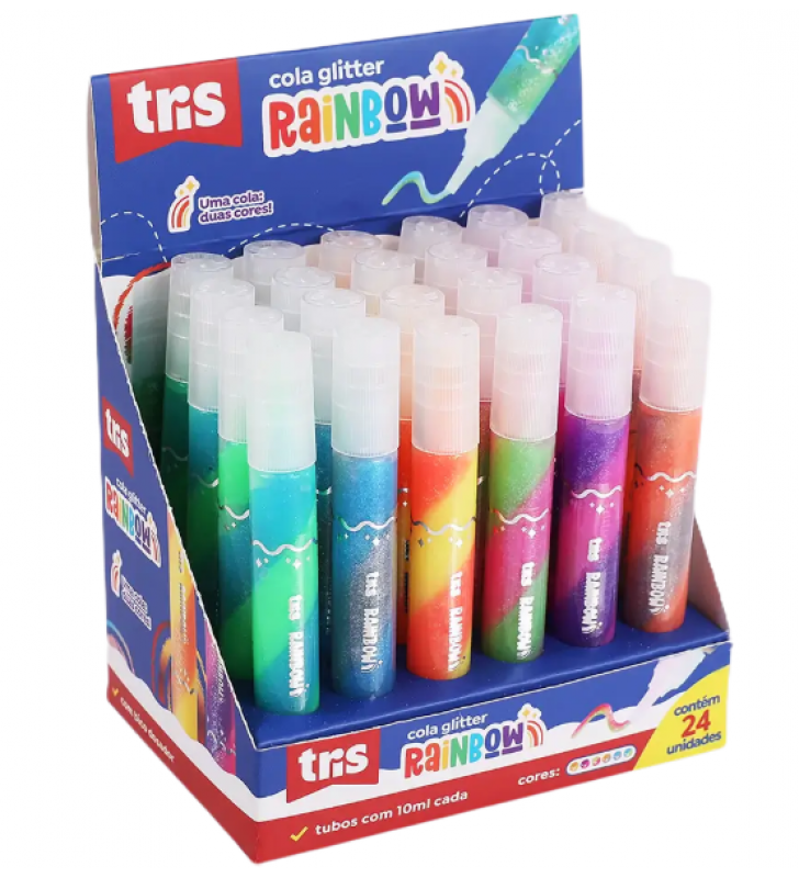 Cola liquida 10ml rainbow com glitter colorida Tris