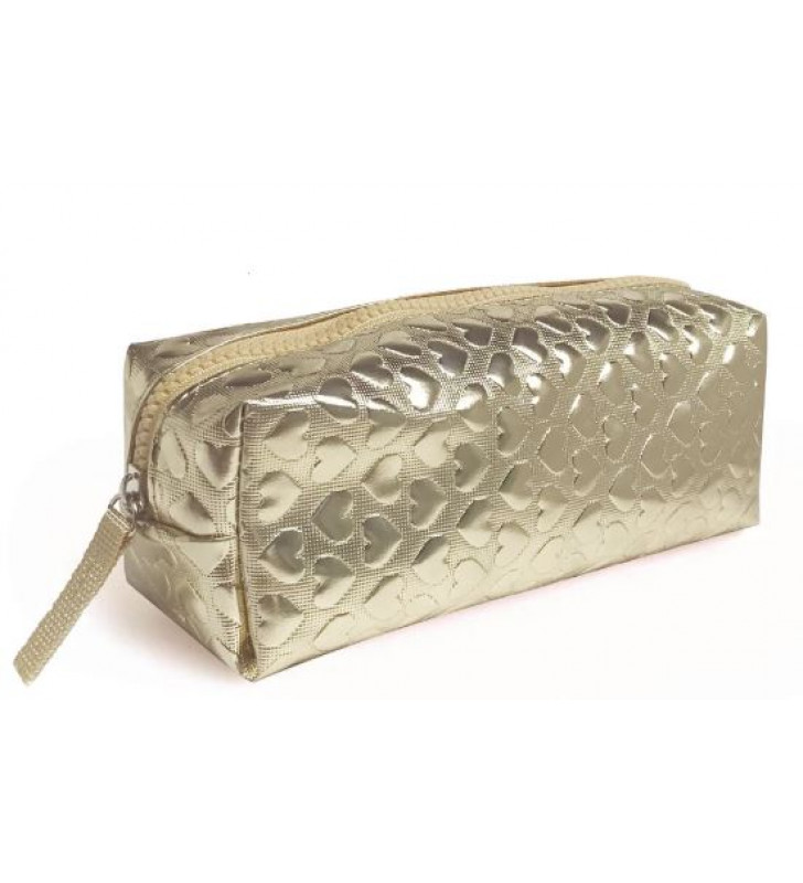 Com efeito metalizado dourado e estampa de corações.