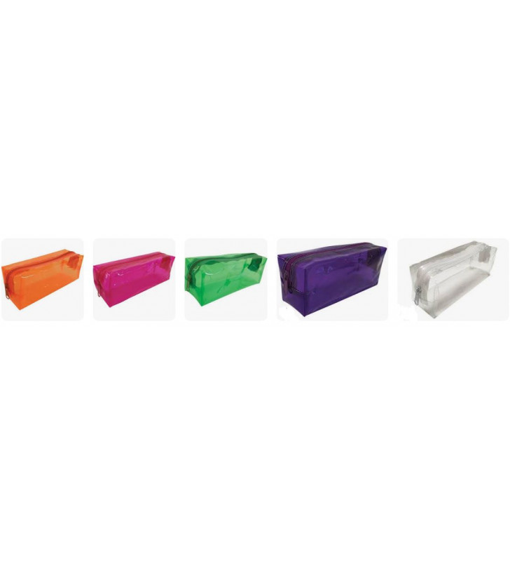 Estojo escolar médio retangular translucido cores neon Kit