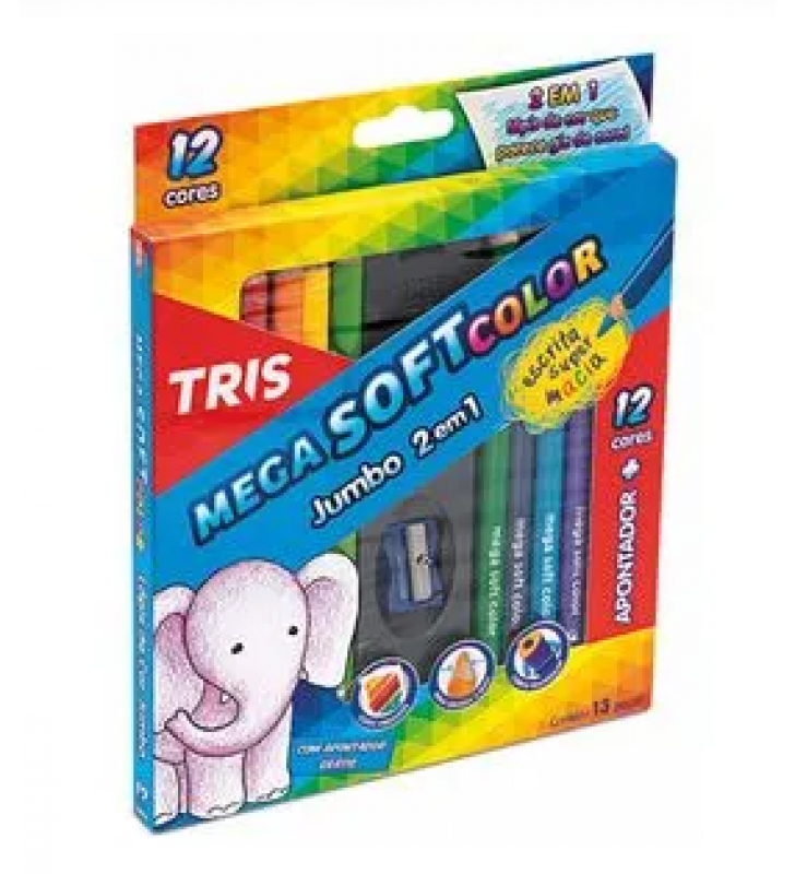 Lápis de madeira! Com corpo triangular, traço super macio e cores vibrantes, o lápis de cor MEGA SOFT COLOR Jumbo possui excelente cobertura, além do tamanho jumbo, ideal para mãozinhas pequenas.
