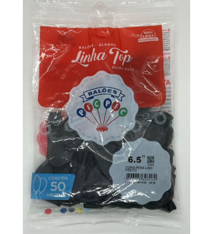 Balão liso 6.5 preto com 50 unidades Pic Pic