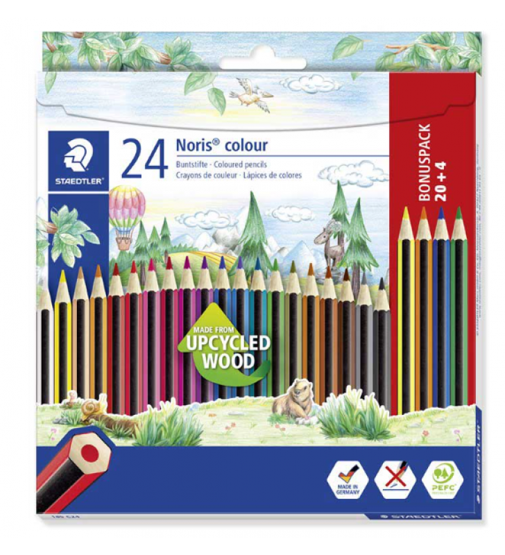 O conjunto de Lápis de Cor Noris 24 cores da Staedtler é sinônimo de precisão e qualidade. Com uma paleta de 24 tons vibrantes, ele oferece uma vasta gama de cores para dar vida a qualquer projeto, seja ele escolar, artístico ou de lazer. Seu formato sextavado é uma característica-chave, pois proporciona um manuseio confortável e firme, evitando que os lápis rolem da mesa.