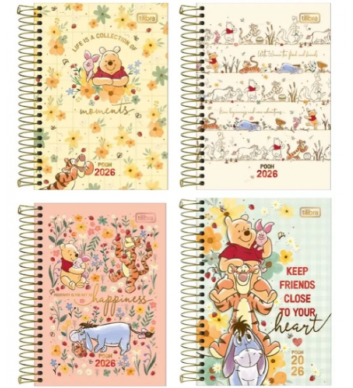 Agenda espiral pooh estampas 176 folhas m5 Tilibra
