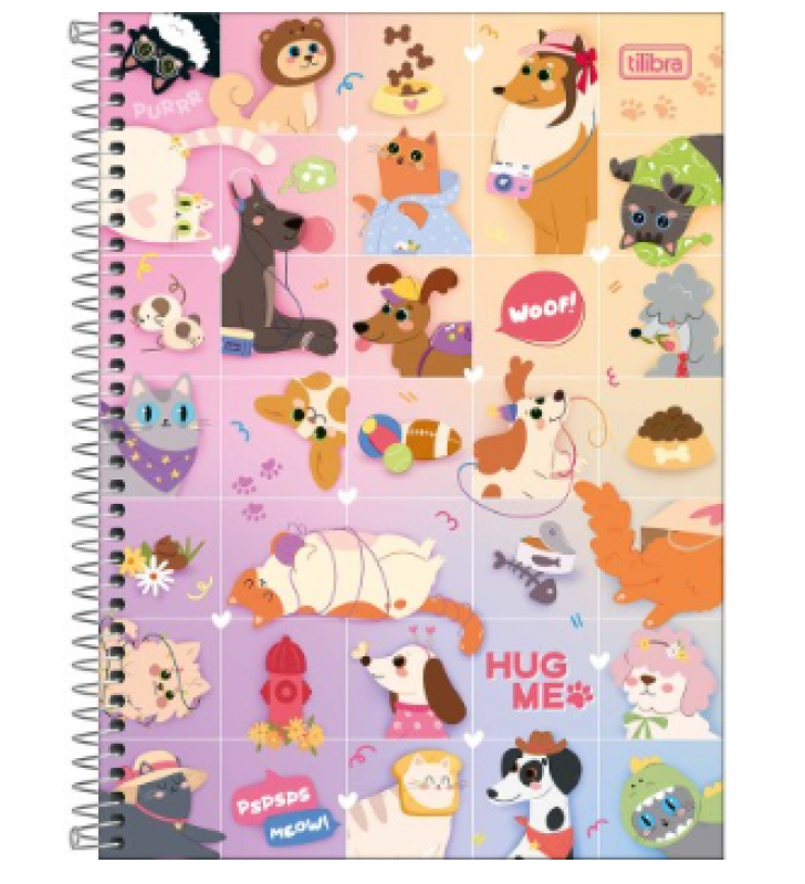 O Caderno Espiral Capa Dura Universitário 1 Matéria Hug Me 80 Folhas da Tilibra é perfeito para você que busca uma opção para organização da rotina de estudos com ilustrações alegres e encantadoras de pets.