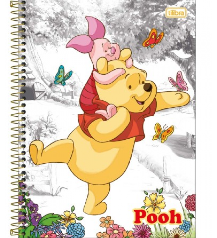 Caderno espiral capa dura 10 matérias 160 folhas pooh universitário Tilibra