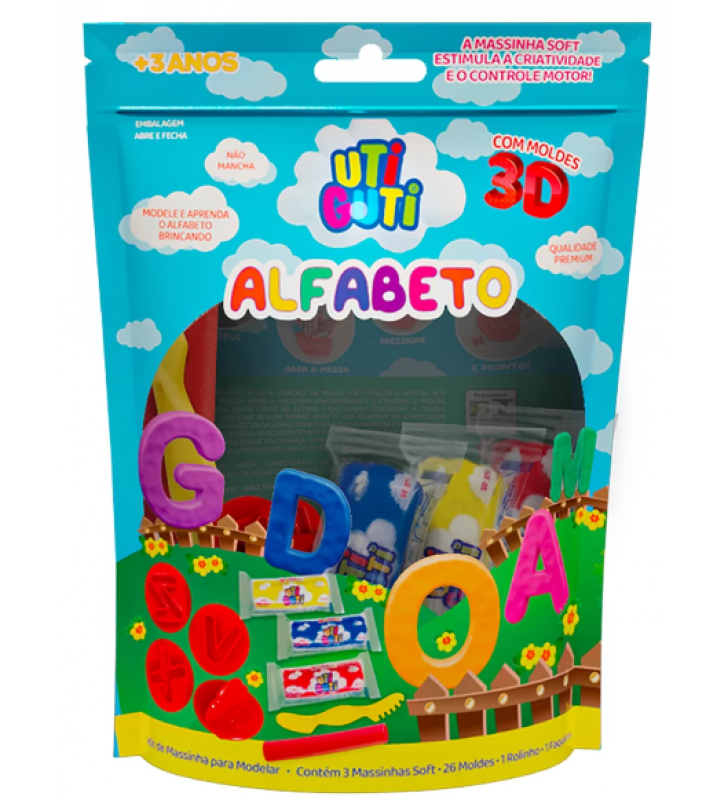 Massa de modelar soft alfabeto com 3 cores Uti Guti