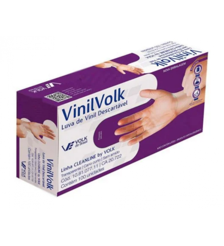 Luva descartável tamanho g com 100 vinil com amido Volk