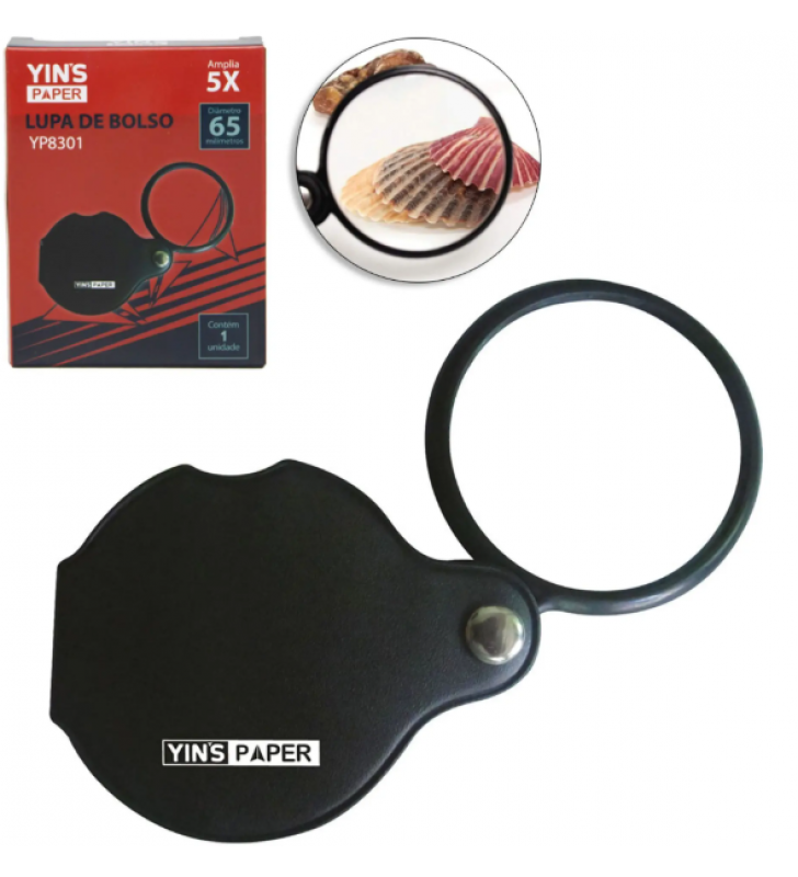 Lupa de aumento 65mm 5x preto de bolso Yins Paper